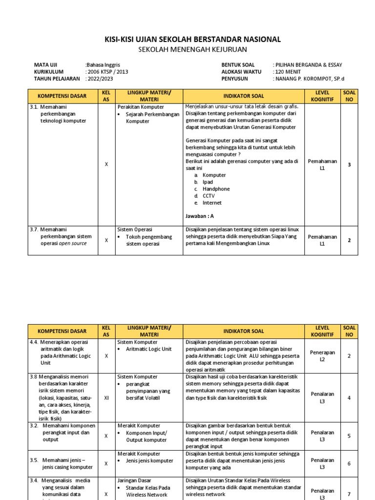 - Banyak blog dan website pendidikan yang dikelola oleh guru atau komunitas pendidikan membagikan contoh soal, baik pilihan ganda maupun esai, beserta kunci jawabannya.